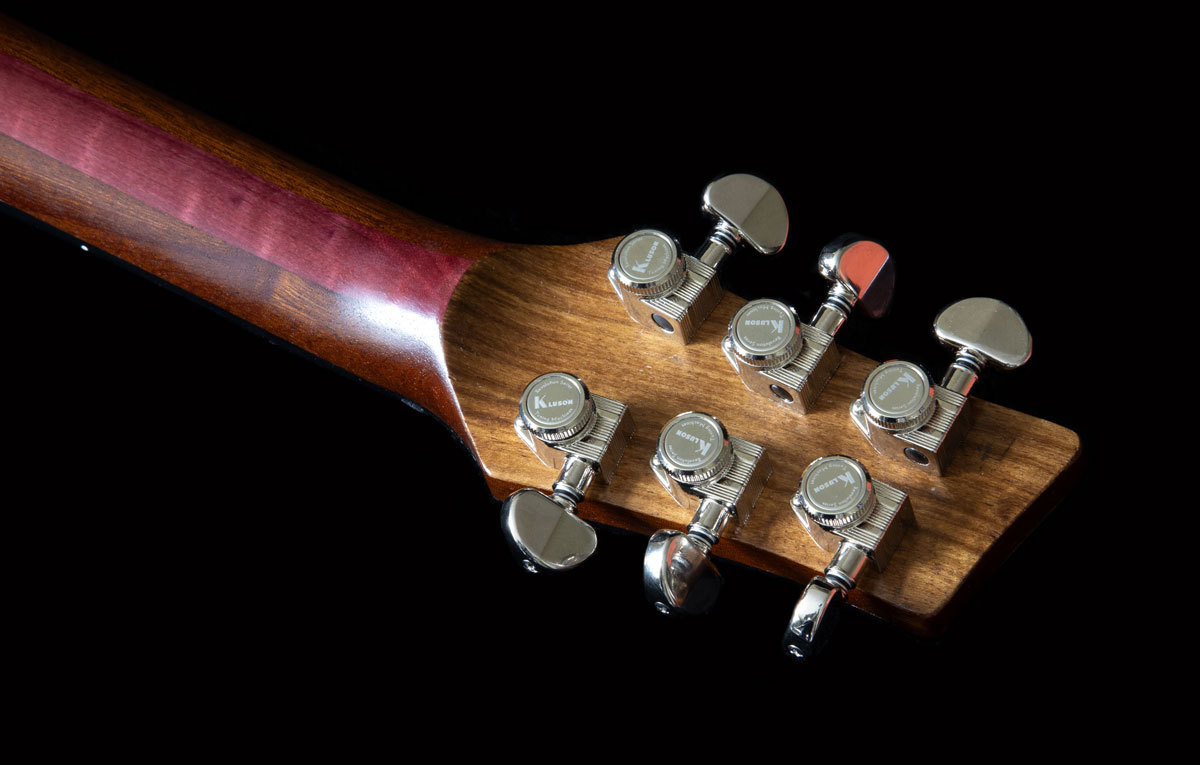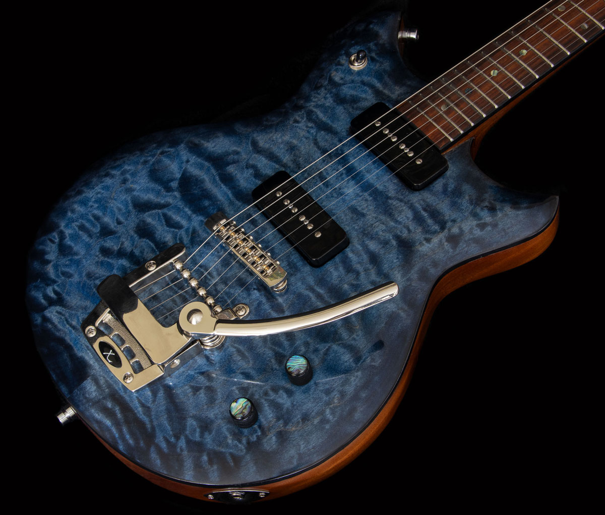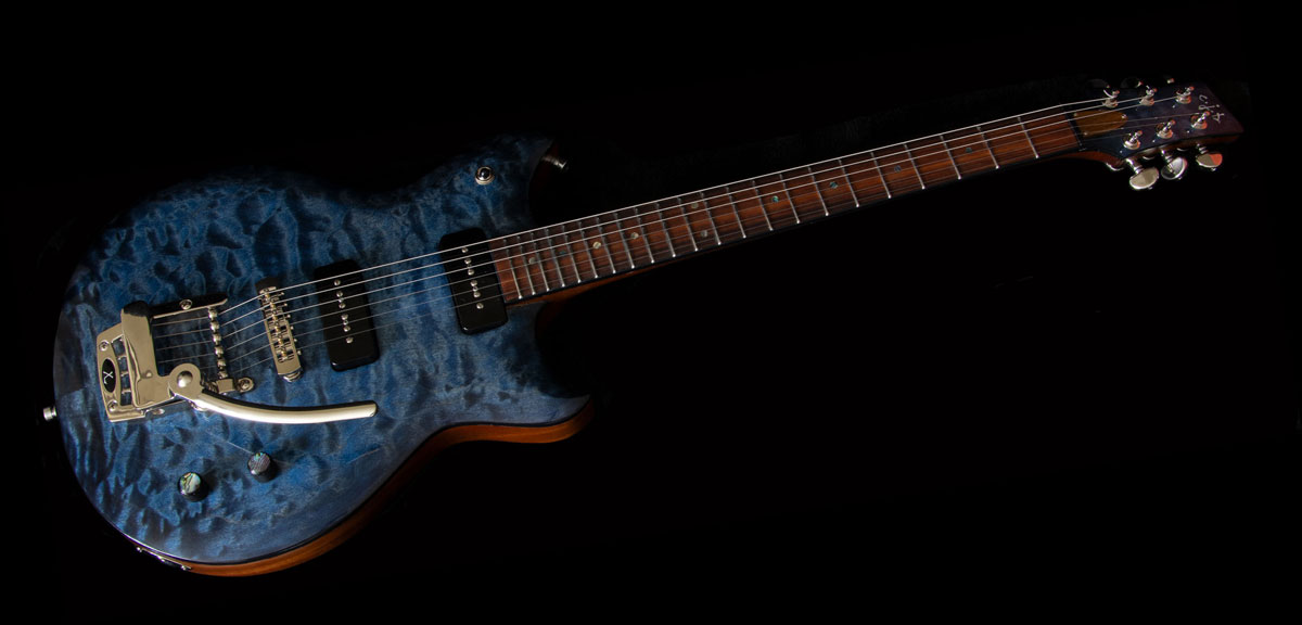var body = document.body; body.className += " u-body u-xl-mode"; body.style.cssText += " "; var dataBg = ''; if (dataBg) { body.setAttribute('data-bg', dataBg); } Watch the build process and hear a demo of this custom built P90 guitar with a figured maple top. Specs Body/Neck Sapele Mahogany & Purple Heart Top Figured Maple Fret-board Puriri with Paua inlays Pickups Tonerider Vintage P90s Hardware Xtrem Vintage Tremolo, Kluson Locking Revolution Tuners, Golden Age Roller Bridge Frets Medium-high Stainless Steel Photos 15